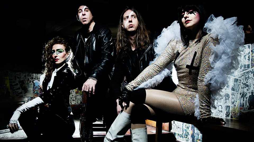 Forged in the flames of New York City’s rock club scene, glam rock outfit Mother Feather developed a stand-out style with glittering costumes and a punk rock attitude from the get-go. Its lead vocalists, Ann Courtney and Elizabeth Carena, met in college, forming a tight-knit bond and eventually adding drummer Gunnar Olsen and bassist Seth Ondracek and guitarist Chris Foley to the line-up by 2009. But it took them a number of years to release their first Mother Feather album, a self-titled debut in 2016. It took them much less time to conquer their second album, Constellation Baby, which came out November 2nd. The album doesn’t wander far from their original aesthetic, but sees the group expand beyond party rock into much more emotional territory – now, the band’s big ideas are reflected in its arena-worthy sound.