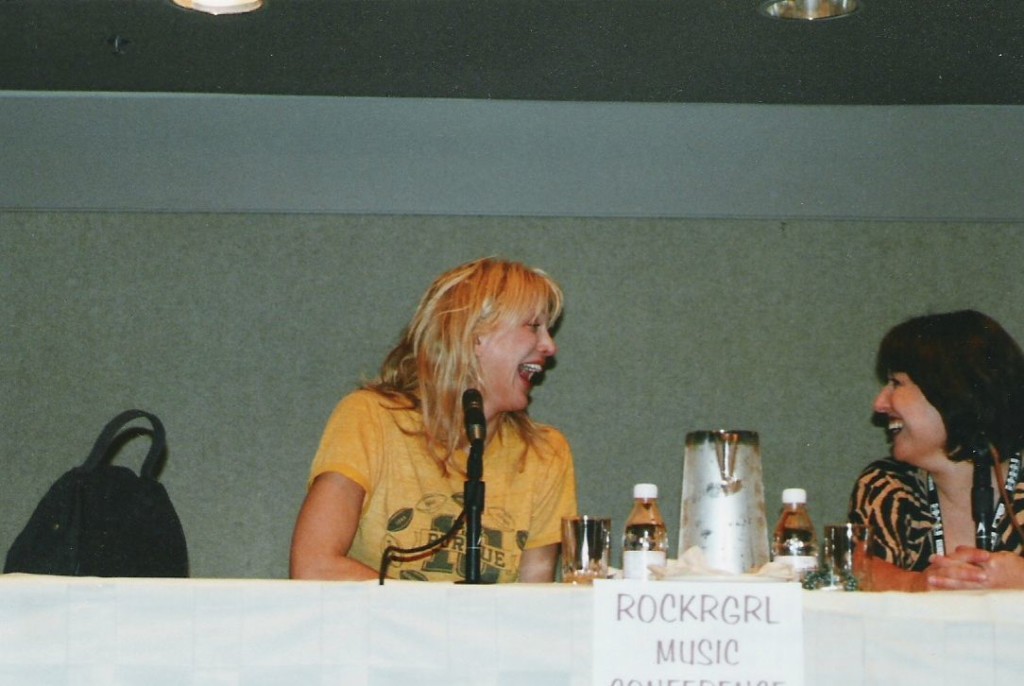 In November of 2000, five years after the start of ROCKRGRL, I put together a conference in Seattle to discuss the state of women in music. We had panels, a trade show, and 250 female artists in all genres of music from all over the world performing throughout downtown Seattle. It took more than a year of planning, especially since I had no experience doing anything quite as daunting. I reached out to Courtney a few times to ask if she would participate but got no response. So I was surprised when, the night before the conference began, I got a phone call. “I’m coming,” she said. “What do you want me to do?”