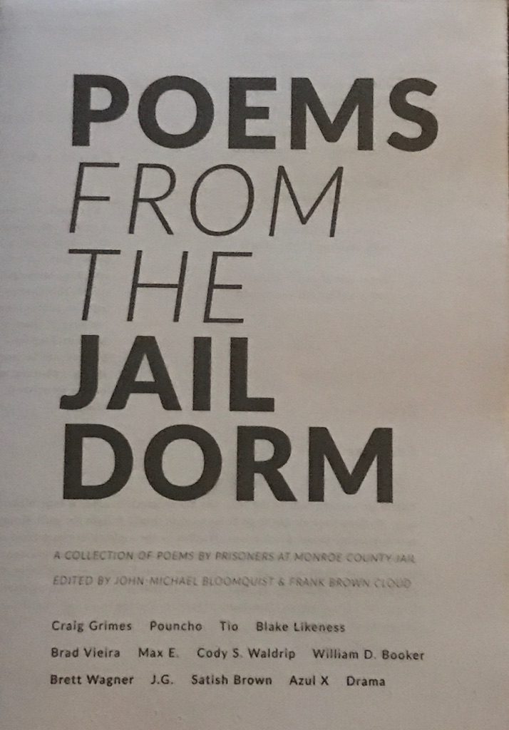 Poems from the Jail Dorm is a collection of poetry written by men who are incarcerated at the Monroe County Jail in Bloomington. This zine, which was published by Monster House Press and the New Life Poetry Workshop, includes contributions from Craig Grimes, Pouncho, Tio, Blake Likeness, Brad Viera, Max E. Cody S. Waldrip, William D. Booker, Brett Wagner, J.G., Satish Brown, Azul X, and Drama. In the forward, John-Michael Bloomquist and Frank Brown Cloud explain, “Poetry is a midwife delivering truth from fact, drawing forth from cold information the reality we need to feel: mass incarceration endangers us all.” Poems from the Jail Dorm folds out to reveal dozens of poems about relationships, childhood, the criminal justice system, and day-to-day life, written from the perspective of people who are confined to jail. Unfortunately, the Monroe County Jail has decided to discontinue the program that enables this zine to published. Monster House Press is working towards getting this program reinstated. More information about this effort can be found on their website.