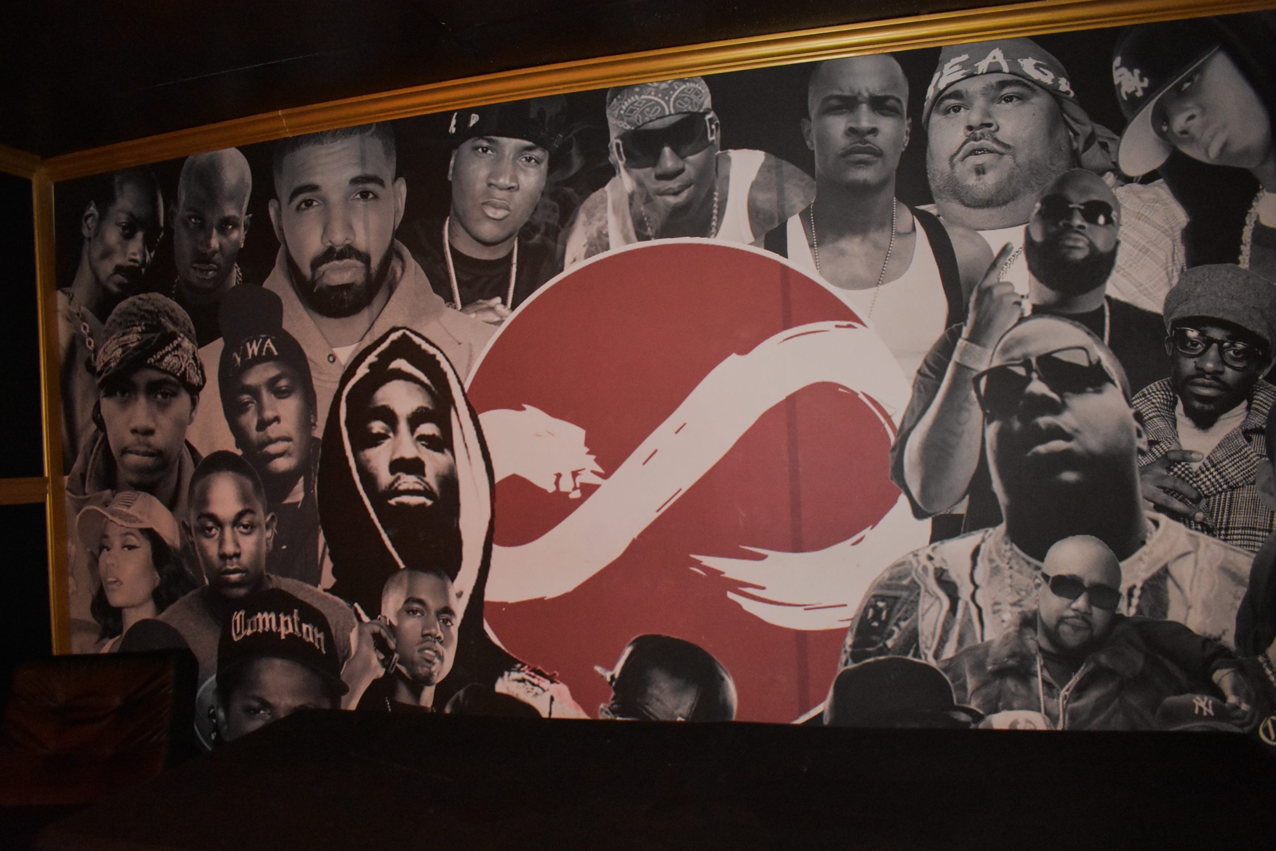 Clients and recording artists sign the booth wall after recording.