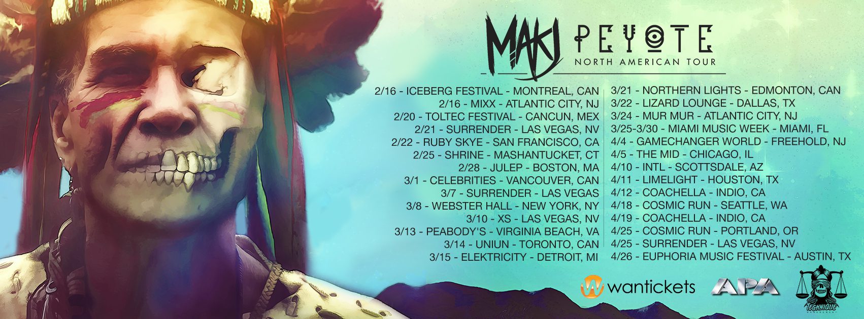 - MAKJ will be hitting every major stop in the US & Canada on his first full North American Headline Tour, including plays at Coachella, Northern Lights Festival, XS & Surrender, Ruby Skye, Webster Hall, and Winter Music Conference. Pre-sale tickets go on sale today, followed by general on-sale on Monday January 27th at 10am local time. All pre-sale ticket holders will automatically be entered to win a chance to meet MAKJ before each show (five winners will be chosen at random). Follow this link to snag them before they sell out!