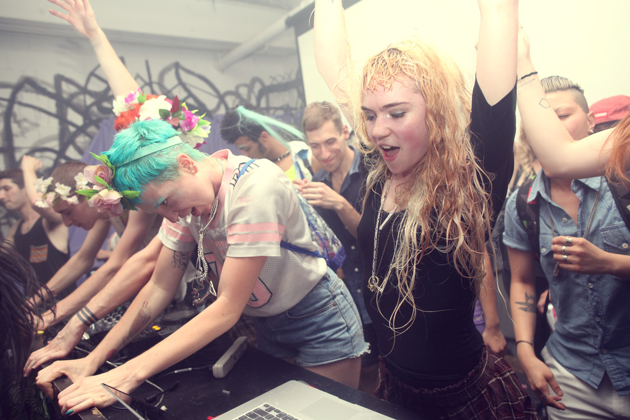 Grimes DJs 285 Kent. Photographed by Erez Avissar, photo courtesy of Pitchfork.